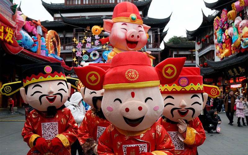 Không khí lễ hội với sắc đỏ của đèn lồng, câu đối, trang trí ánh sáng cùng các chương trình biểu diễn nghệ thuật hiện diện khắp nơi tại Trung Quốc trước thềm năm mới Kỷ Hợi.